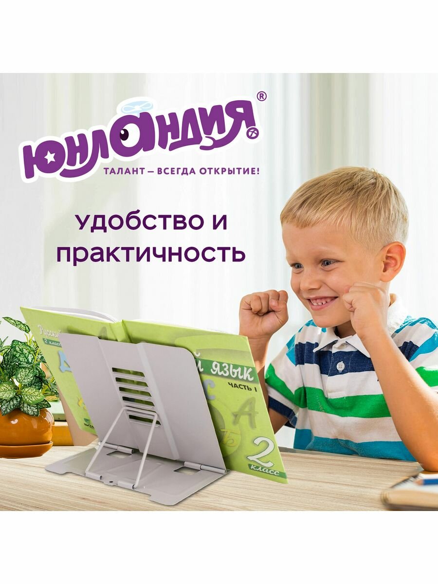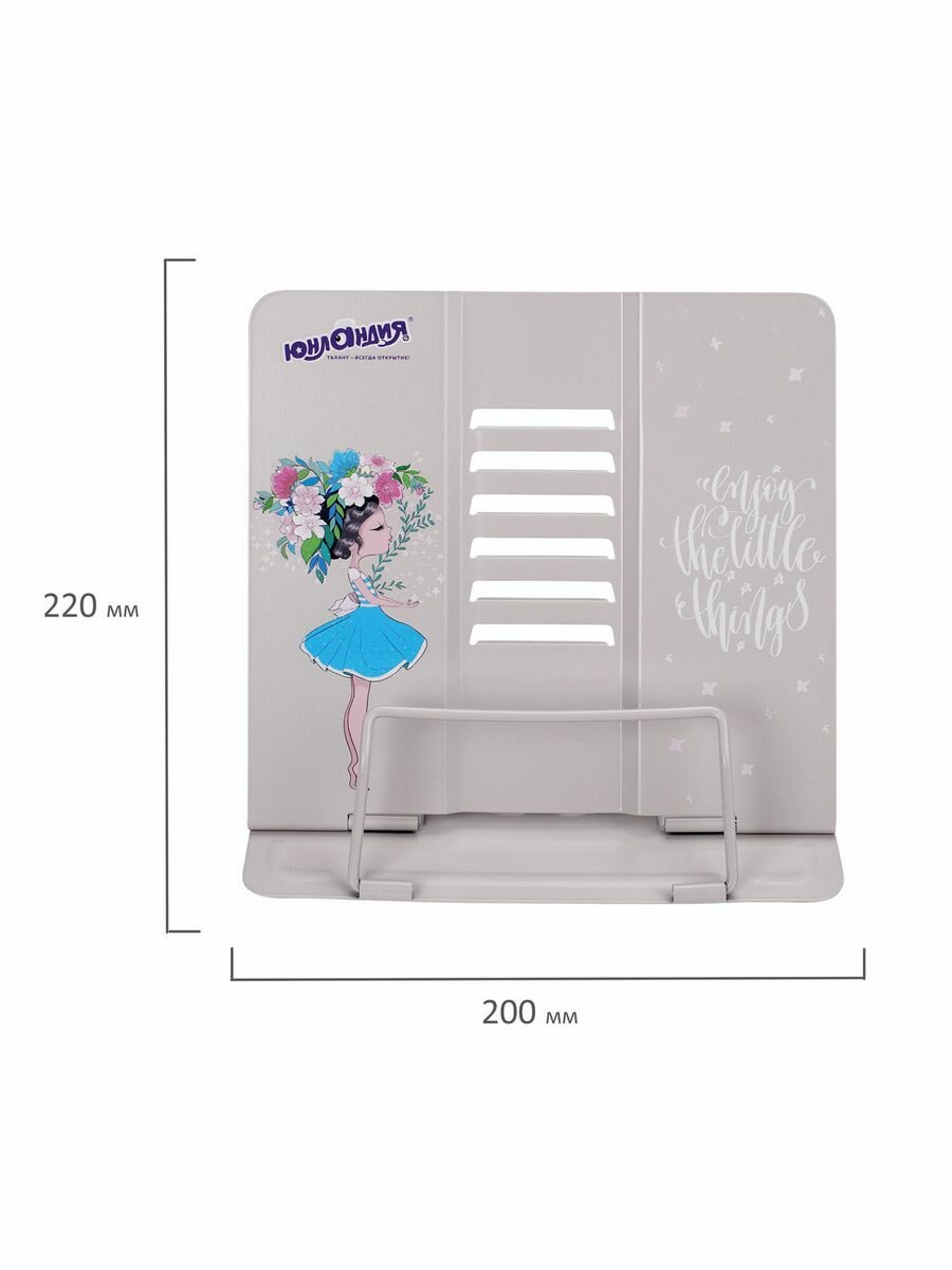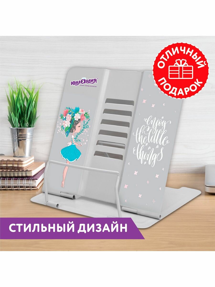 Подставка для книг, учебников, журналов настольная школьная Юнландия Flower girl, регулируемый угол наклона, металл, 237578