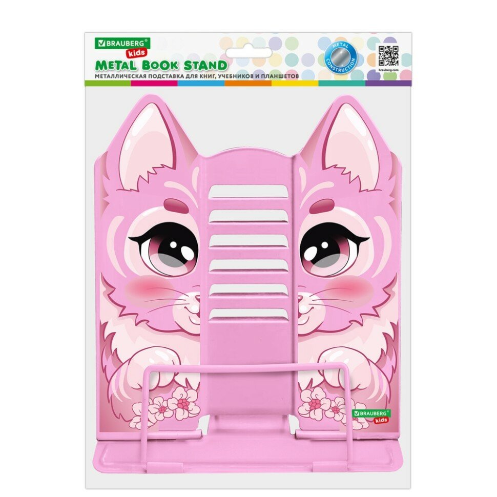 Подставка для книг и учебников фигурная BRAUBERG KIDS "Kitty", регулируемый наклон, металл, 238059