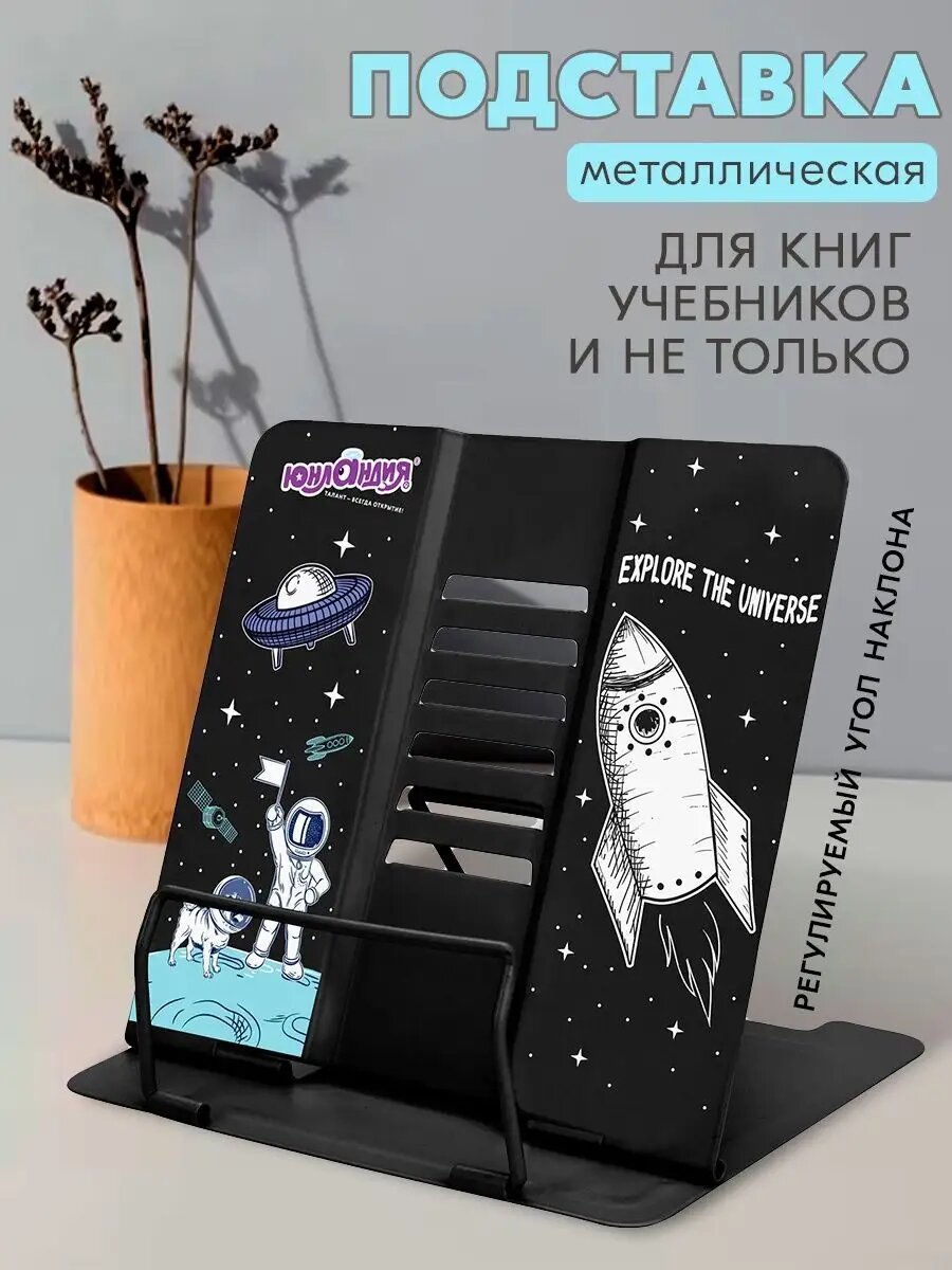 СохранитьПодставка для книг, учебников, журналов настольная школьная Юнландия Space, регулируемый угол наклона, металл, 237577 интересное: