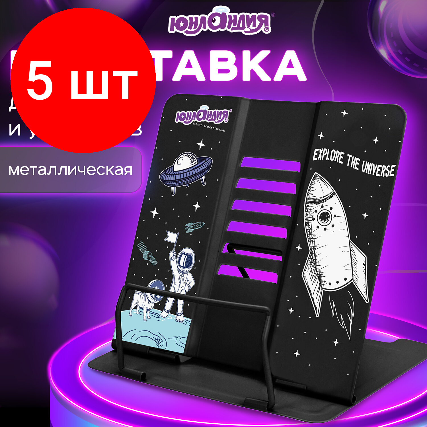 Купить Комплект 5 шт, Подставка для книг и учебников юнландия "Space", регулируемый угол наклона, металл, 237577