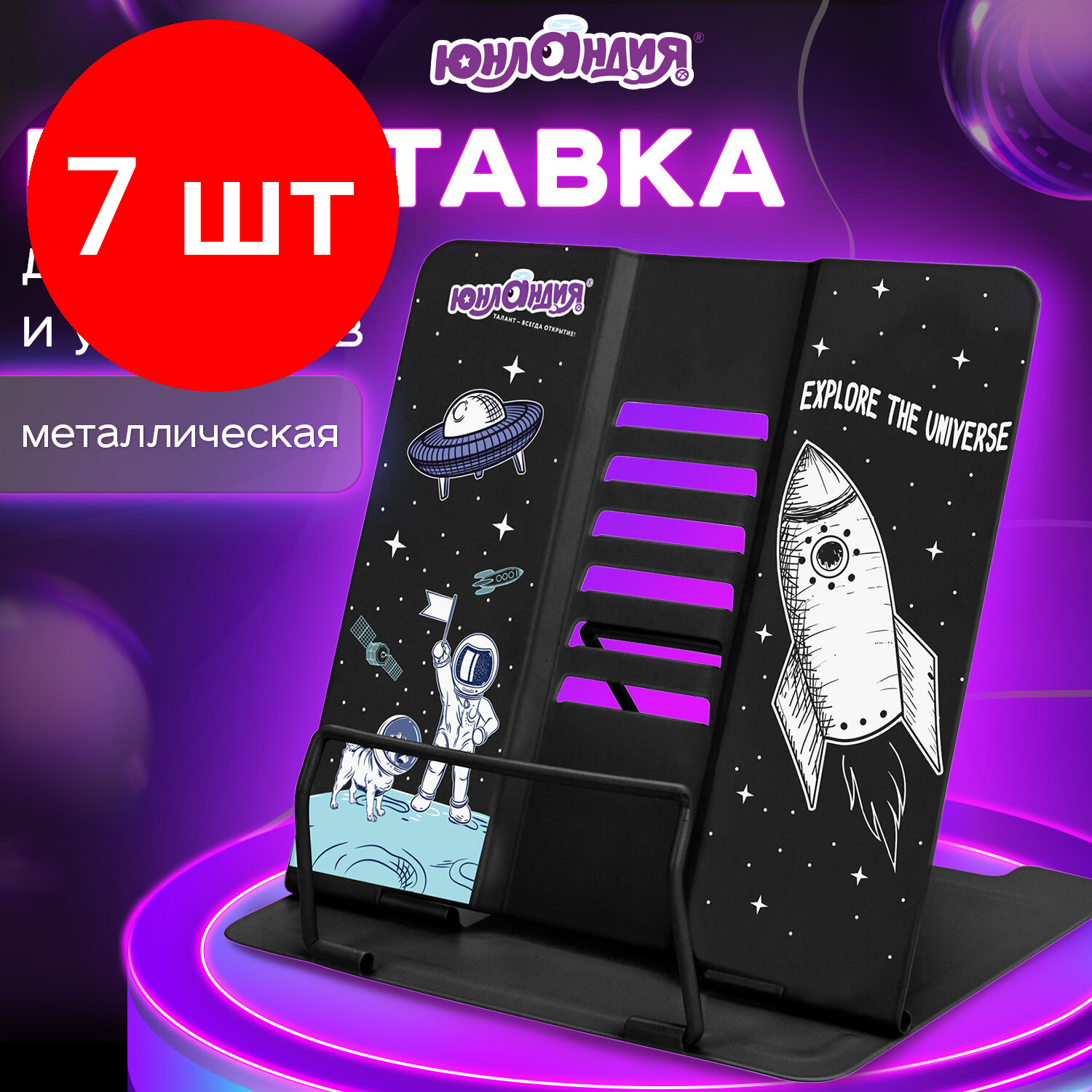 Купить Комплект 7 шт, Подставка для книг и учебников юнландия "Space", регулируемый угол наклона, металл, 237577