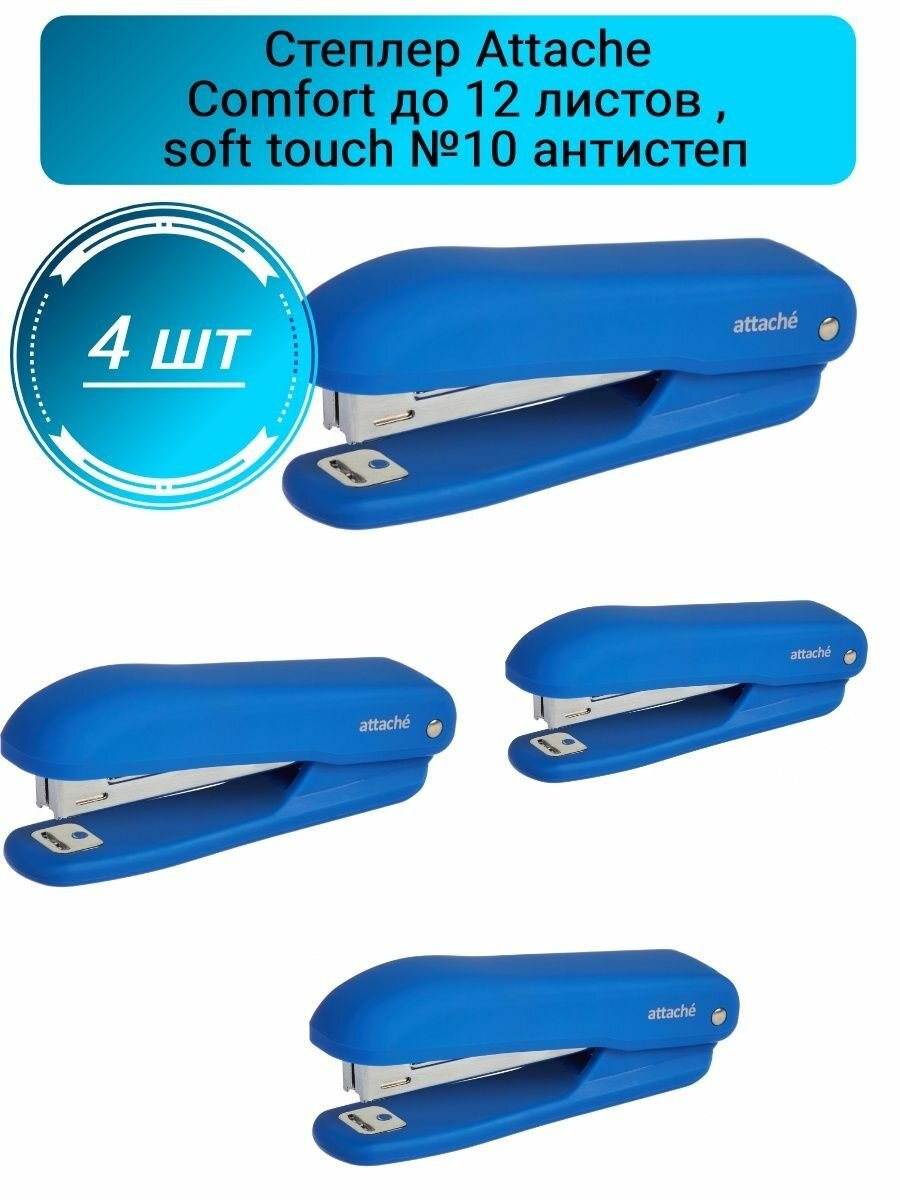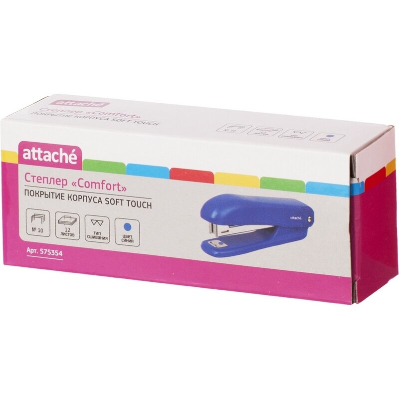 Степлер Attache Comfort до 12 лис., soft touch покрыт, синий,№10 антистеп