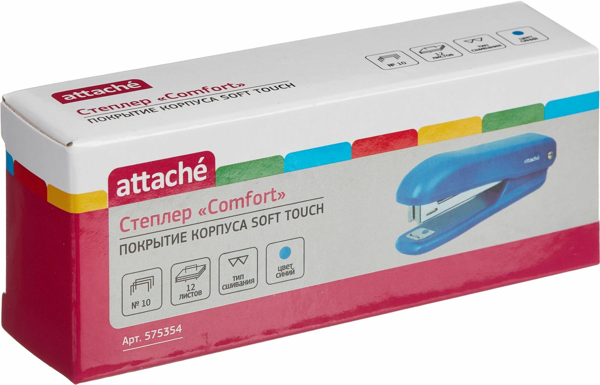 Купить Степлер Attache Comfort до 12 лис., soft touch покрыт, синий,№10 антистеп 575354
