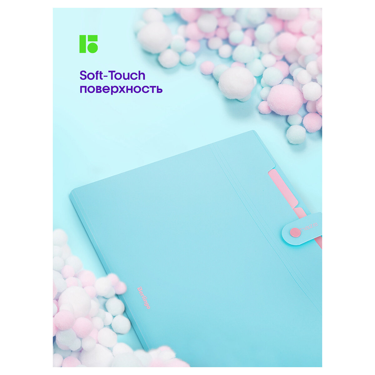 Папка 5 отделений Berlingo "Haze", А4, 600мкм, на кнопке, голубая, софт-тач