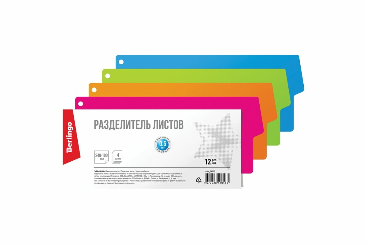 Разделитель листов Berlingo 240*100мм, 12 листов, без индексации, цветной, пластиковый интересное: