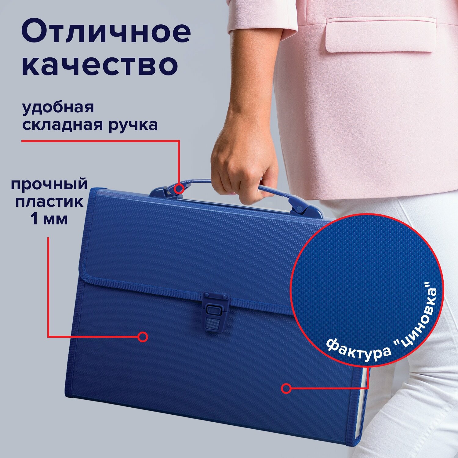 Папка-портфель пластиковая BRAUBERG А4 (332х245х35 мм), 13 отделений, синяя, 221379