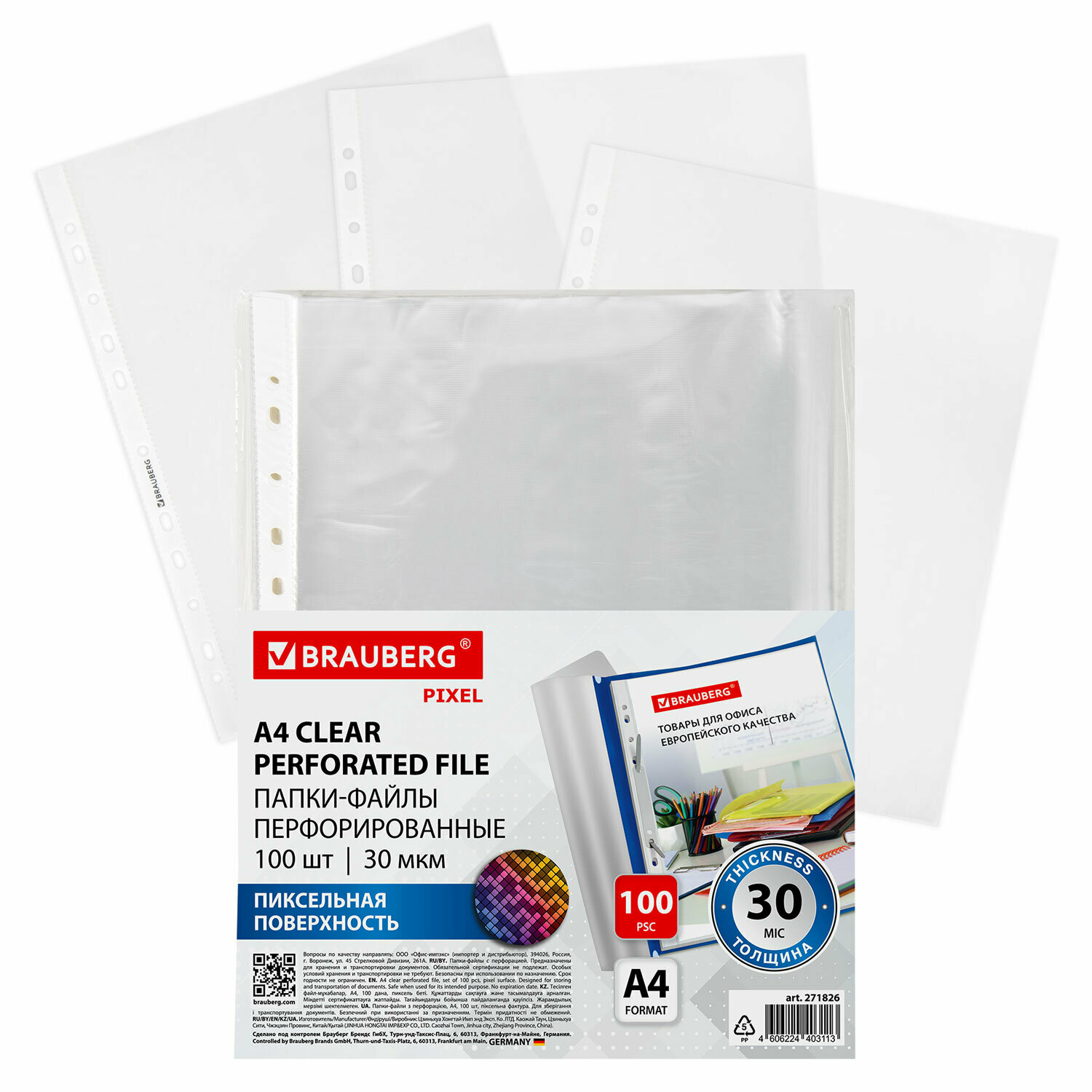 Файлы А4 100 штук, вкладыши мультифора перфорированные с антибликовой текстурой BRAUBERG PIXEL, 30 мкм, 271826 интересное: