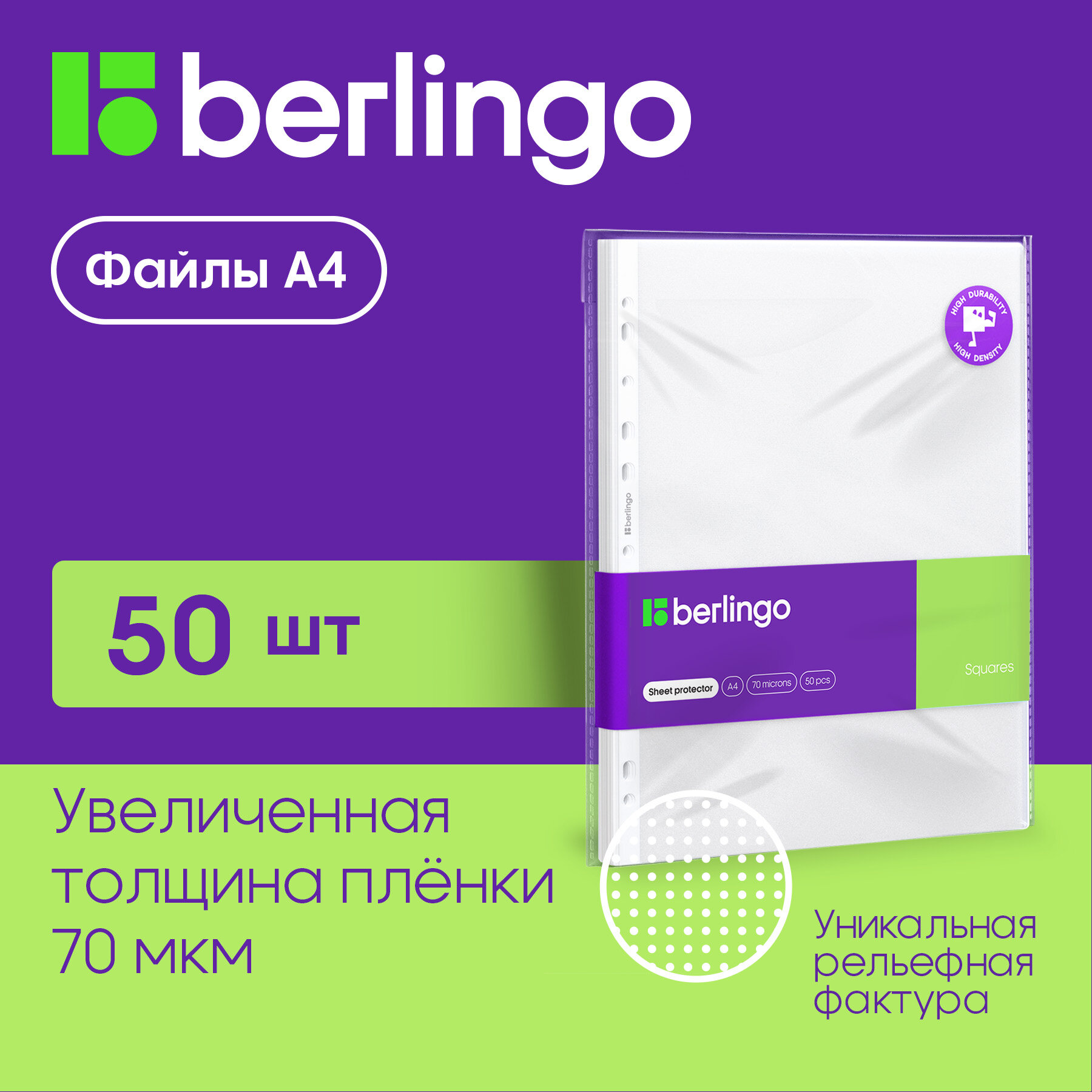 Купить Папка-вкладыш с перфорацией Berlingo "Squares", А4, 70мкм, рельефная текстура, матовая, в пакете, 50 шт. в упаковке