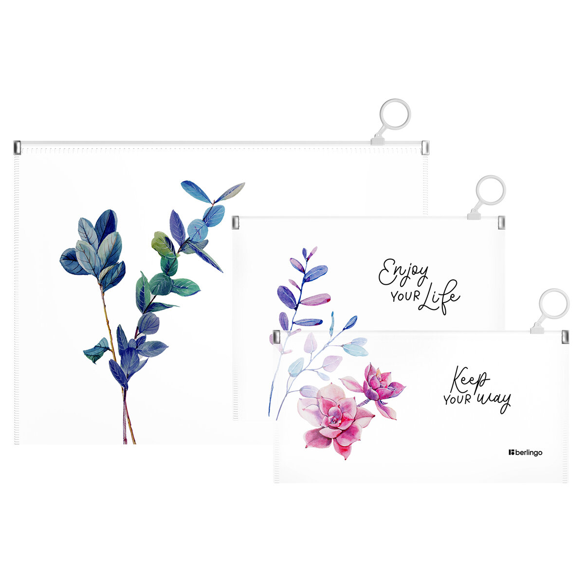 Купить Набор пластиковых папок-конвертов на молнии Berlingo "Eco XS", форматы А4, A5, Travel size, 3шт, с рисунком