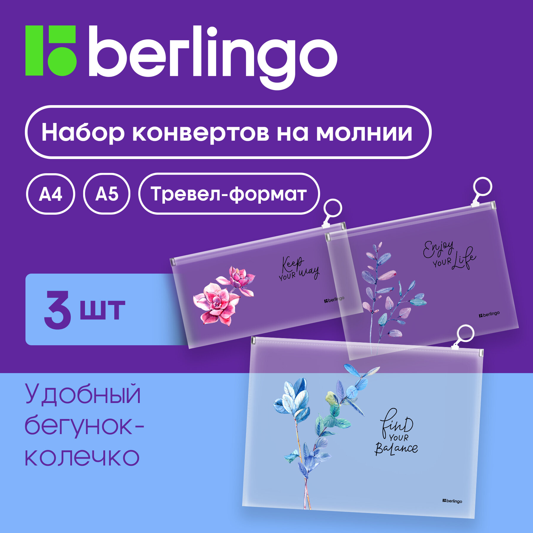 Набор пластиковых папок-конвертов на молнии Berlingo "Eco XS", форматы А4, A5, Travel size, 3шт, с рисунком интересное: