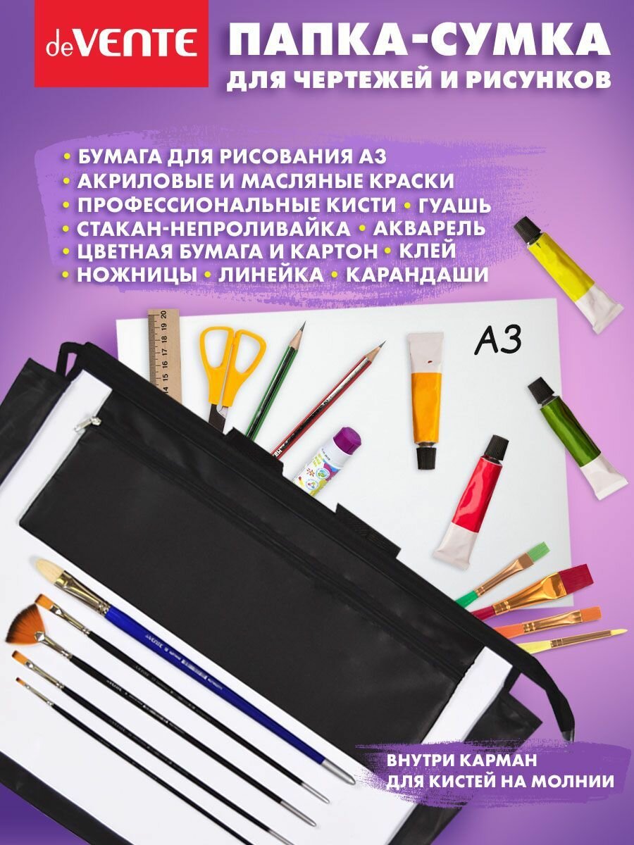 Папка на молнии deVENTE для рисунков и чертежей, А3 46,7х33,8 см, пластиковая, регулируемые ручки, расширение 10см (3075208)