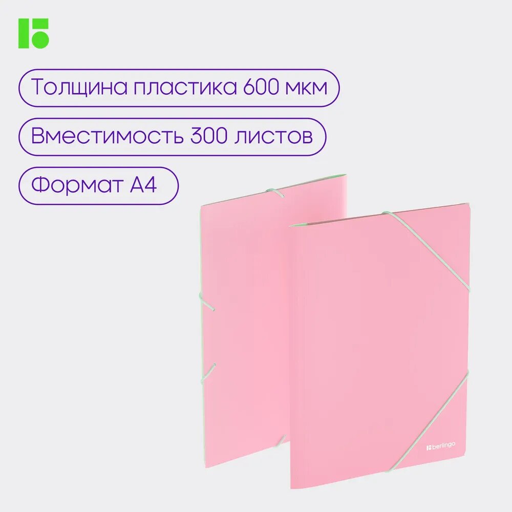 Папка на резинке Berlingo "Haze" А4, пластик, 600мкм, розовая, софт-тач интересное: