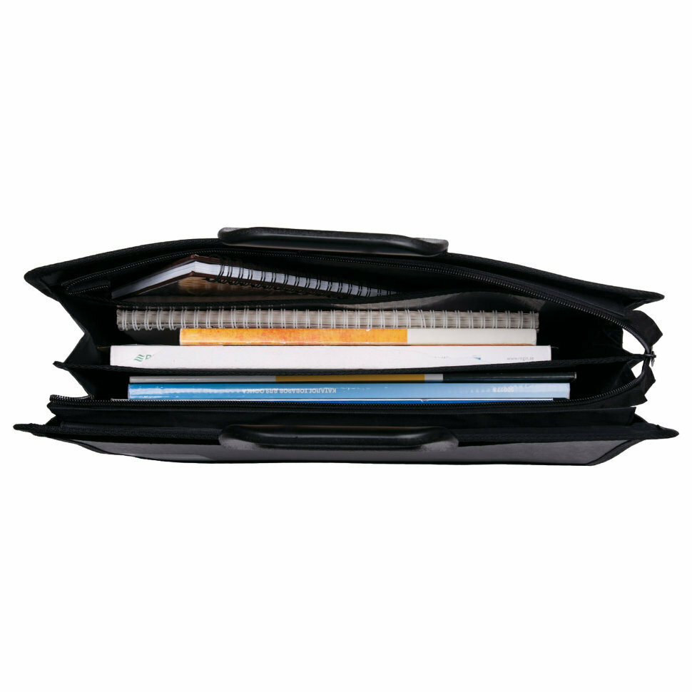 Портфель пластиковый Brauberg , 390х320х120 мм, фактура под дерево, 4 отделения, черный