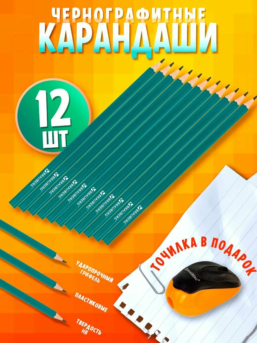 СохранитьКарандаши простые чернографитные Brauberg Набор 12 шт., Нв, без резинки / ластика, пластиковый зеленый корпус интересное: