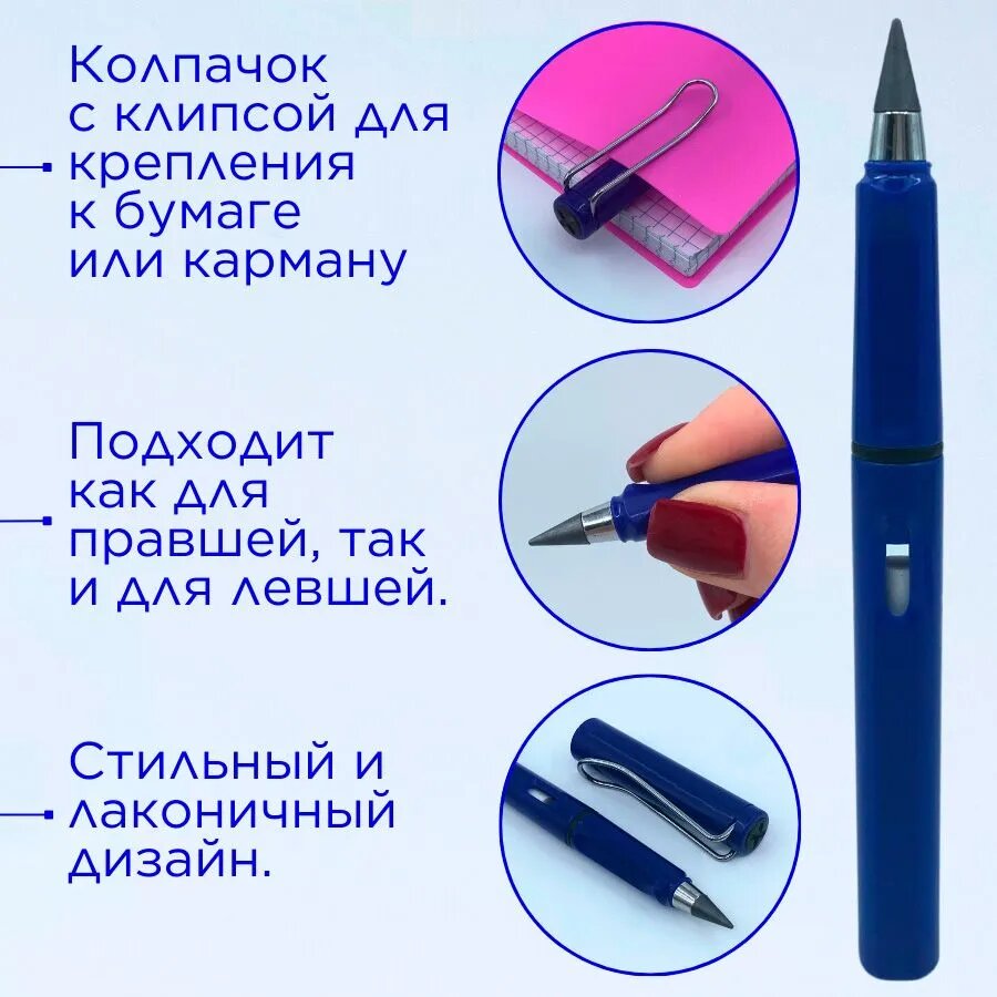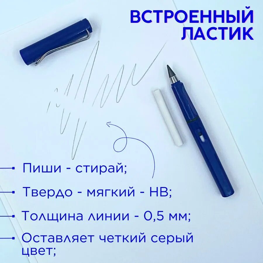 СохранитьВечный карандаш простой с ластиком, синий интересное: