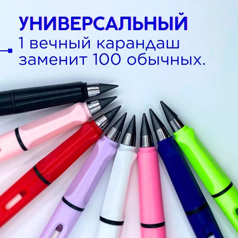 Вечный карандаш цветной с ластиком и насадками набор 12 шт