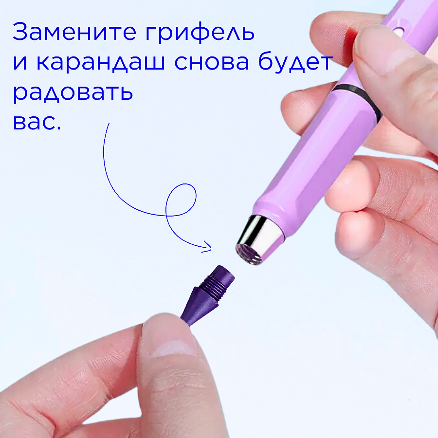 Вечный карандаш простой с ластиком, фиолетовый