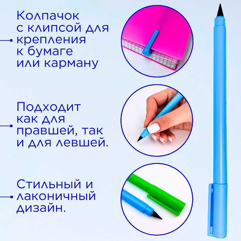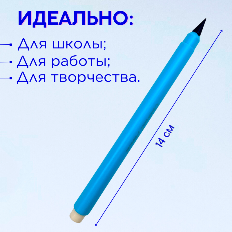 Вечный карандаш простой с ластиком, синий