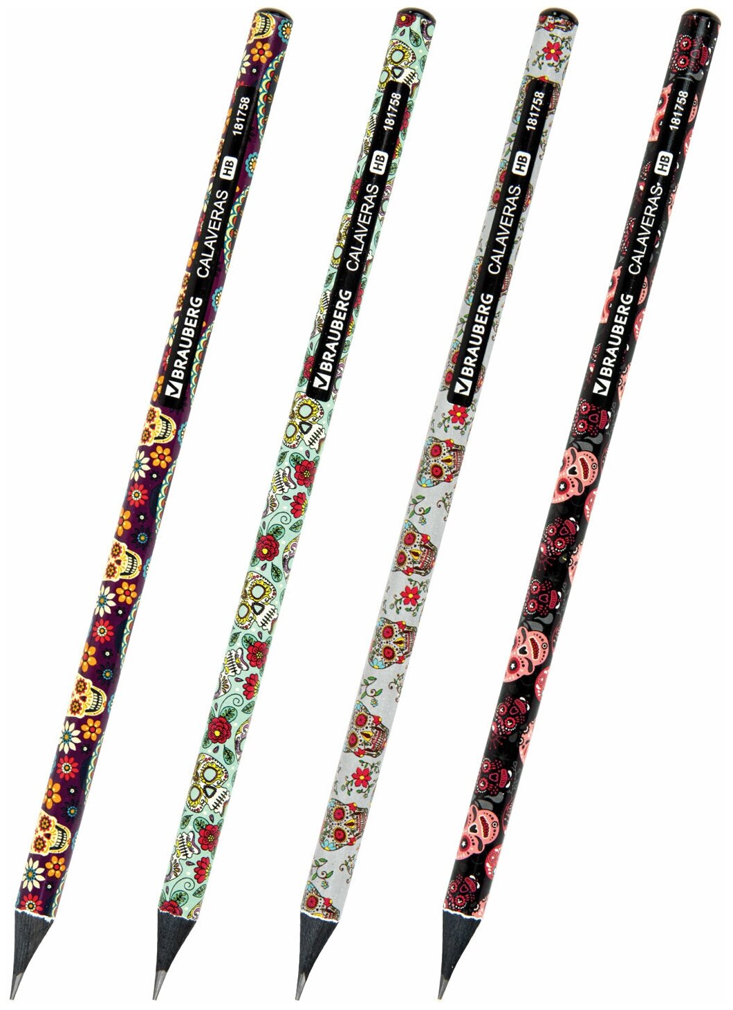 Купить Карандаши простые чернографитные Hb, Brauberg Calaveras, Выгодный Комплект 72 штуки, корпус ассорти, 880756