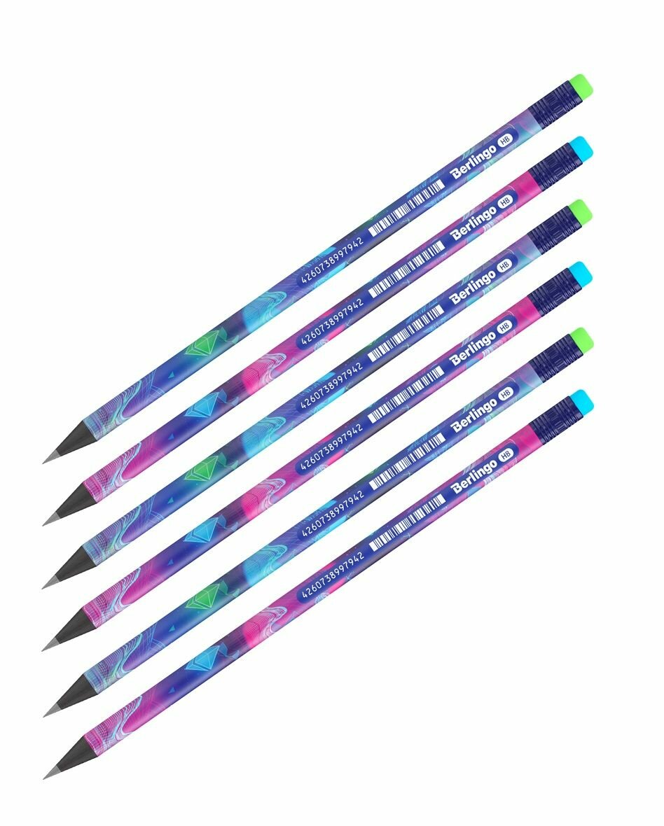 Купить Набор из 6 шт. - Карандаш ч/г Berlingo "Retro Future" HB, черное дерево, круглый, заточен., с ластиком, ассорти