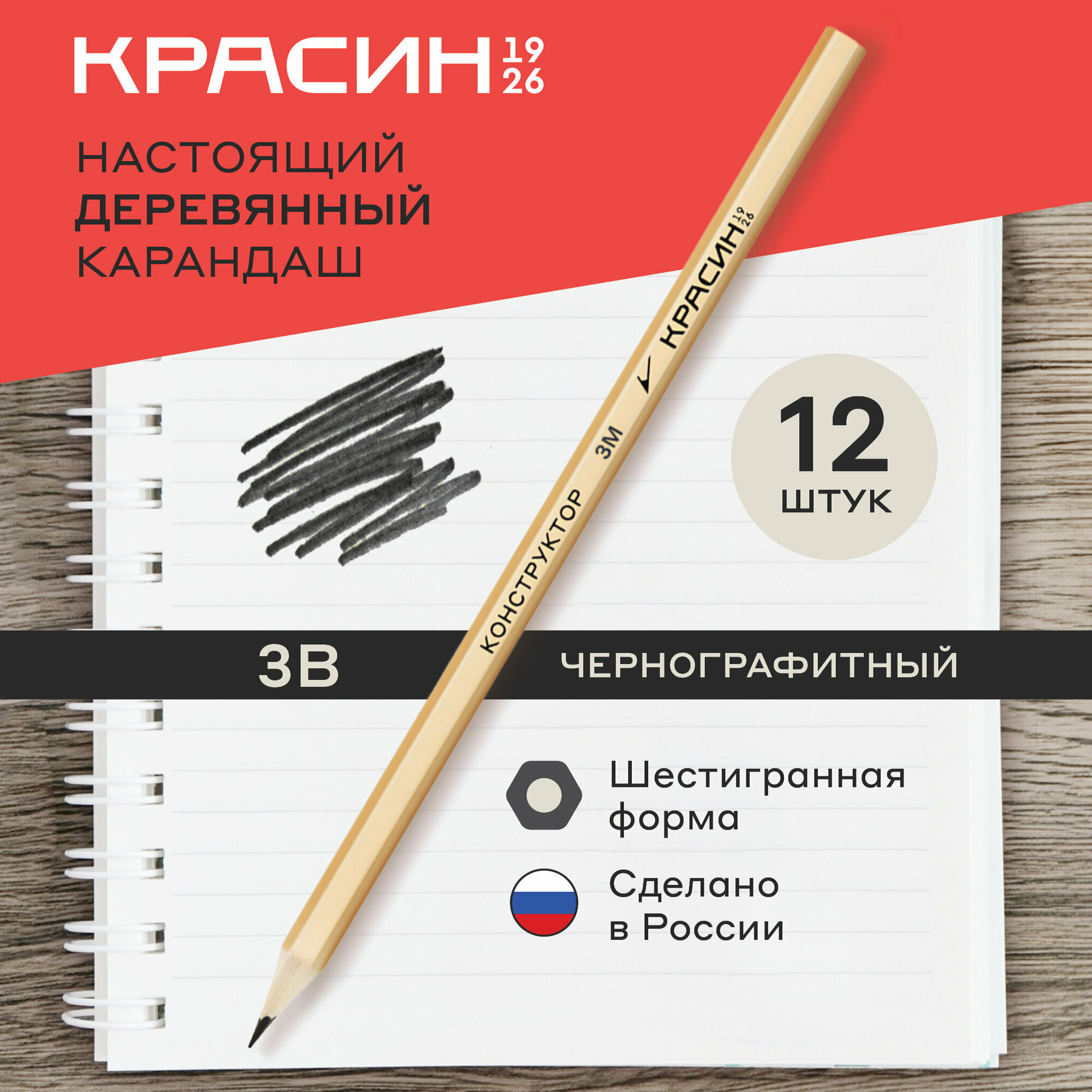 Купить Карандаш простой для школы 3B / Набор простых карандашей для рисования и офиса из 12 штук Красин "Конструктор" / чернографитные карандаши