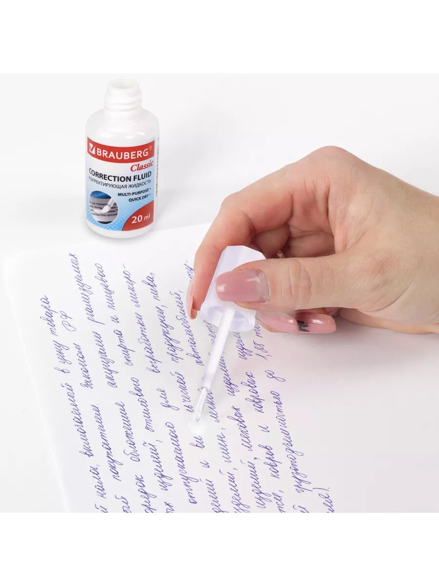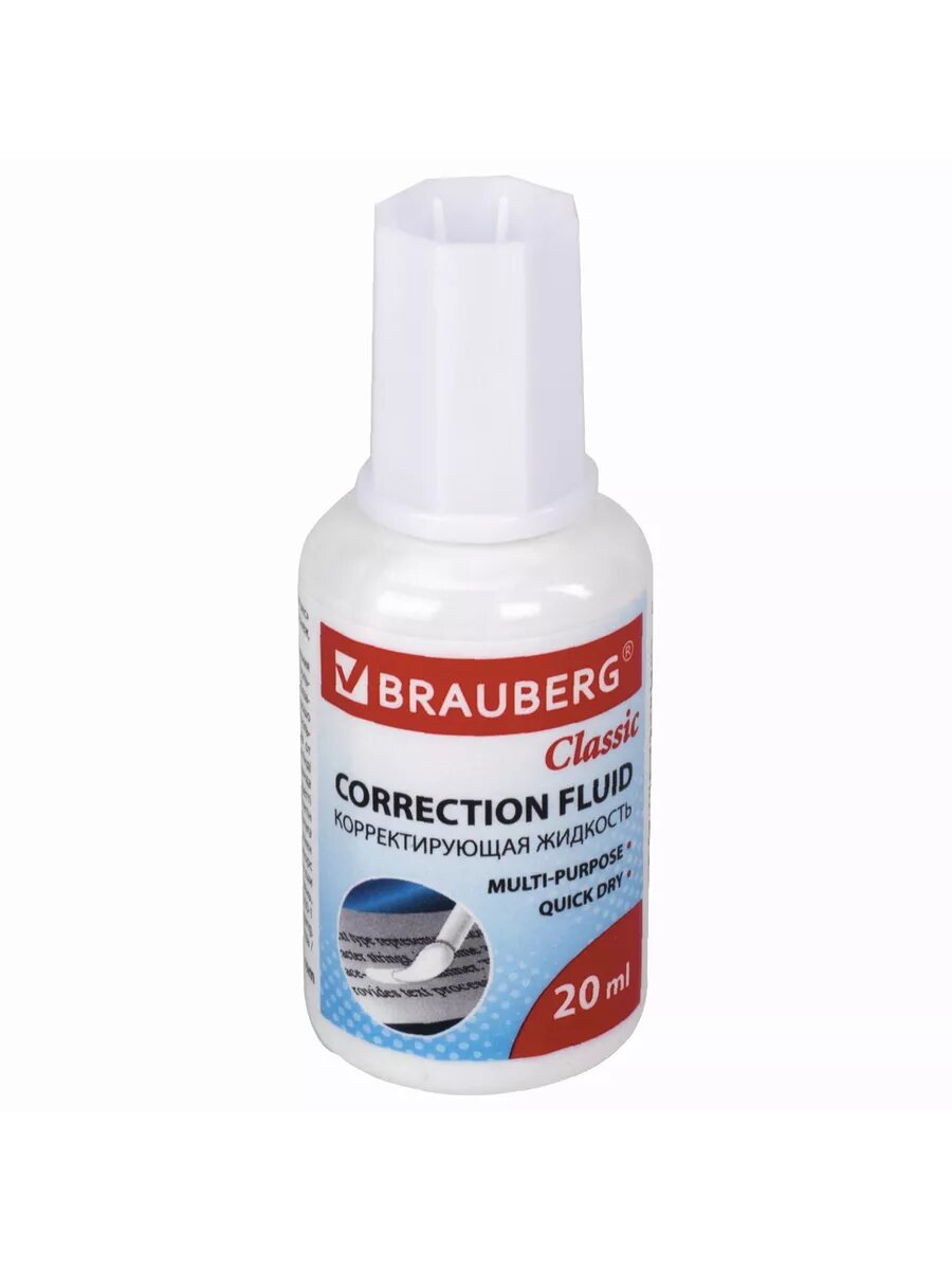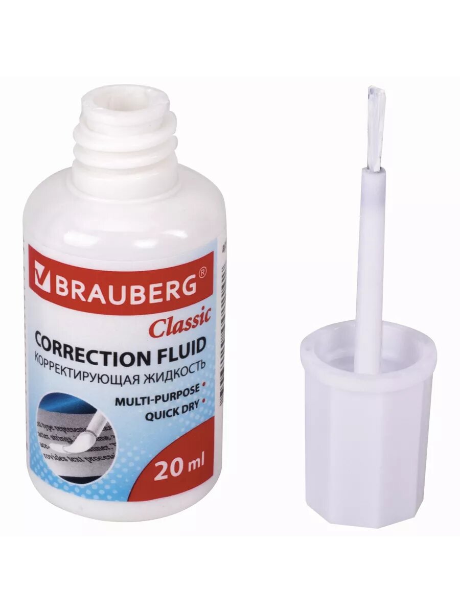 Корректирующая жидкость Brauberg "Classic", 20 мл, с кисточкой, быстросохнущая (220255)
