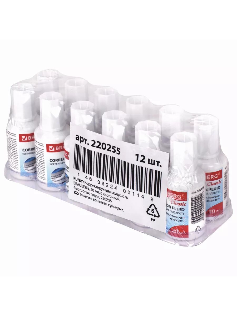 Комплект 25 шт, Корректирующая жидкость BRAUBERG "Classic", быстросохнущая, 20 мл, с кисточкой, 220255