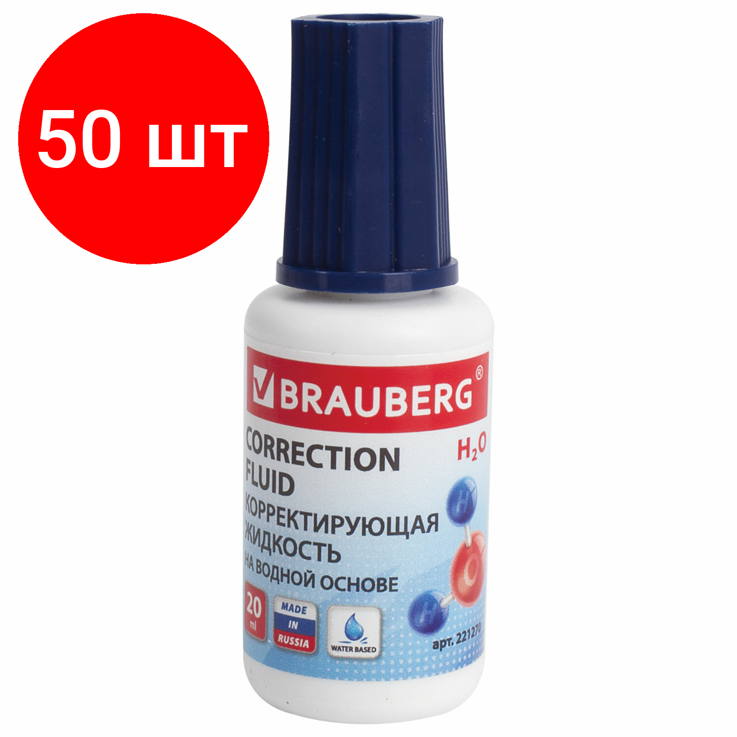 Купить Комплект 50 шт, Корректирующая жидкость BRAUBERG на водной основе, 20 мл, с кисточкой, 221270