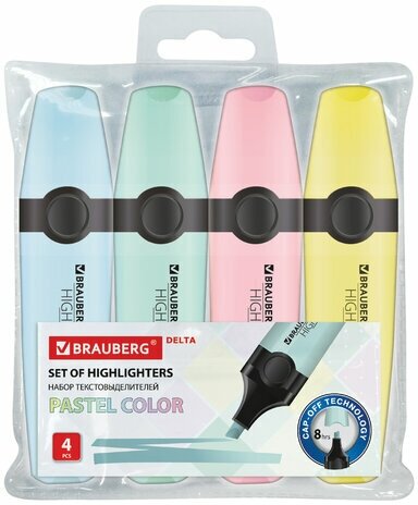 Маркер-текстовыделитель (для выделения текста) Brauberg "Delta Pastel", набор из 4 штук, ассорти цветов, линия 1-5 мм интересное: