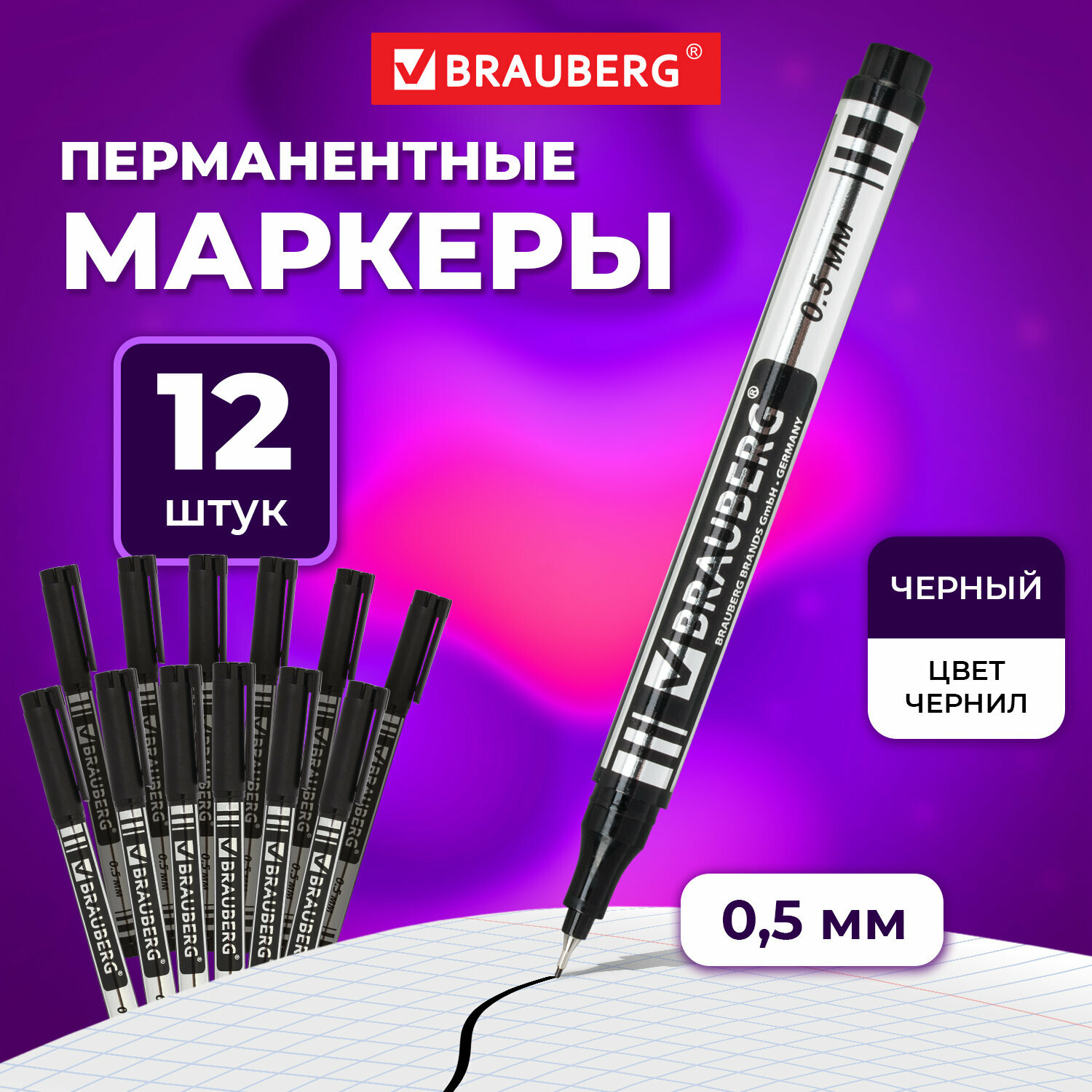 Маркер перманентный черный тонкий 0,5мм комплект 12 штук, BRAUBERG, 880245 интересное: