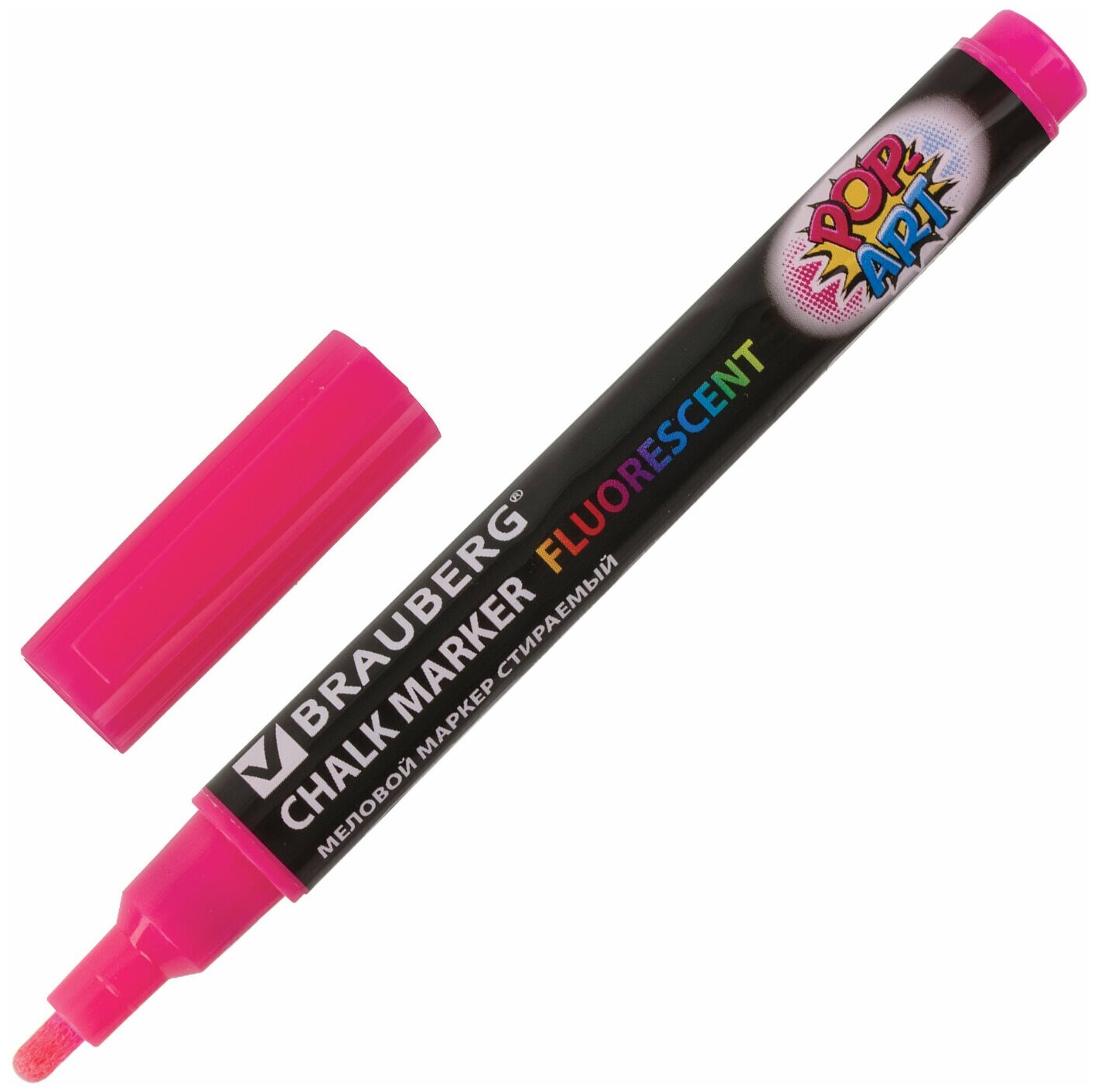Купить Маркер / фломастер меловой стираемый для доски Pop-art Розовый, 3,5 мм, стираемый, для гладких поверхностей, Brauberg, 151522