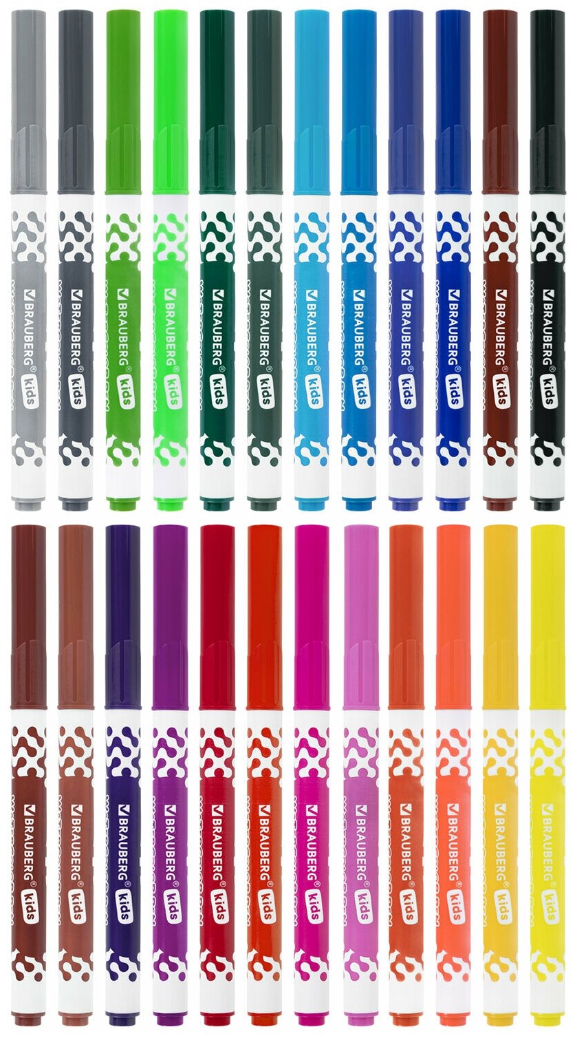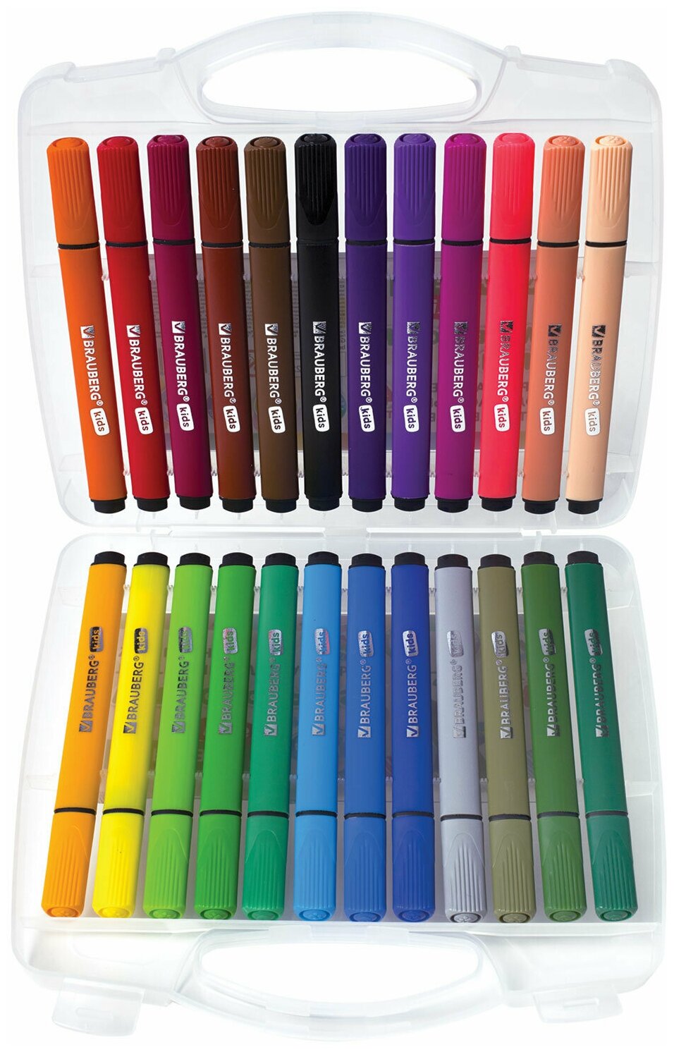 Фломастеры Brauberg в портфельчике утолщенные 24 цвета, вентилируемый колпачок, KIDS, 152186