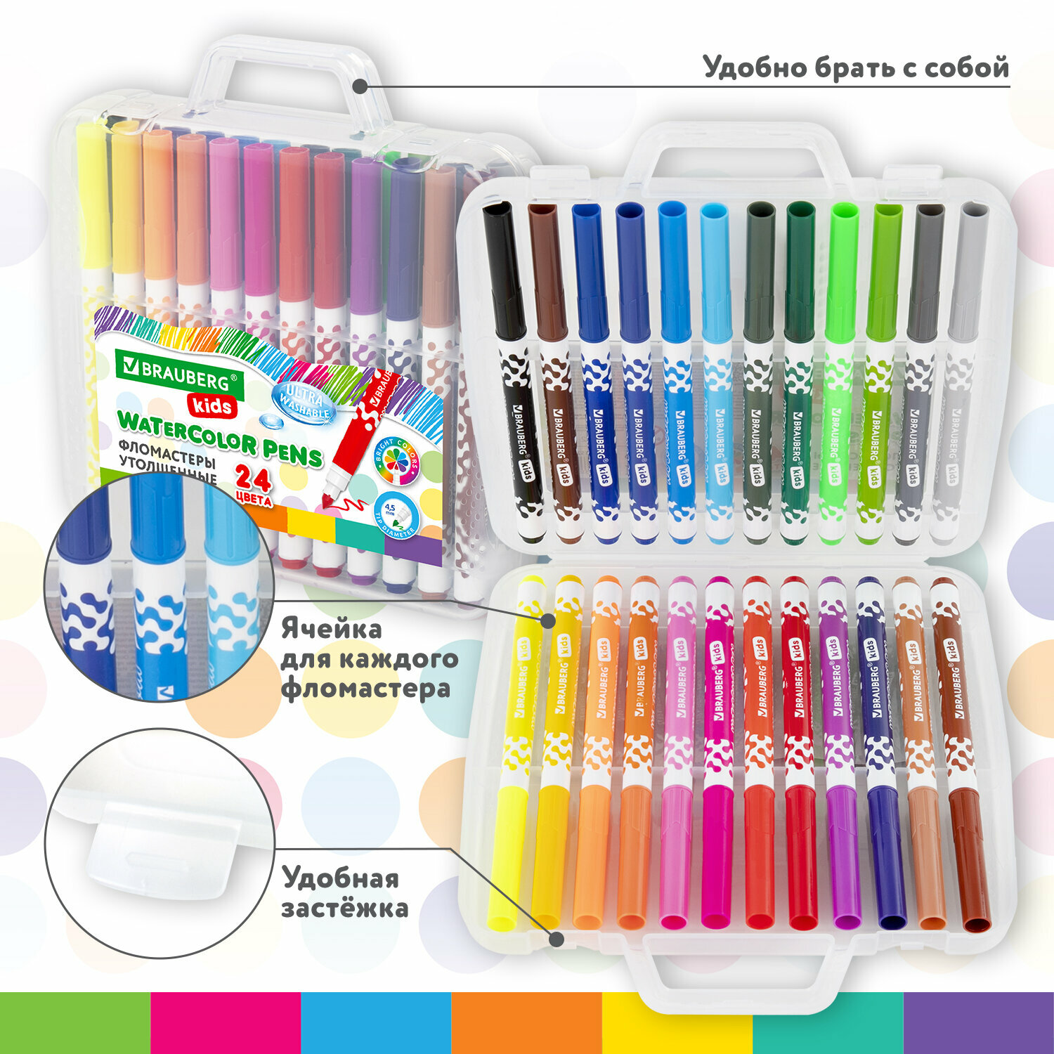 Фломастеры в портфельчике утолщенные 24 цвета, вентилируемый колпачок, BRAUBERG KIDS, 152186 интересное: