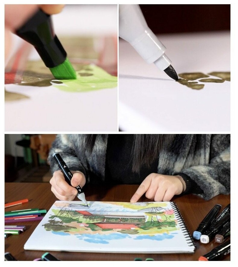Маркеры для скетчинга двухсторонние / Скетч маркеры / Рисование скейтчкв набор 24 цвета интересное:
