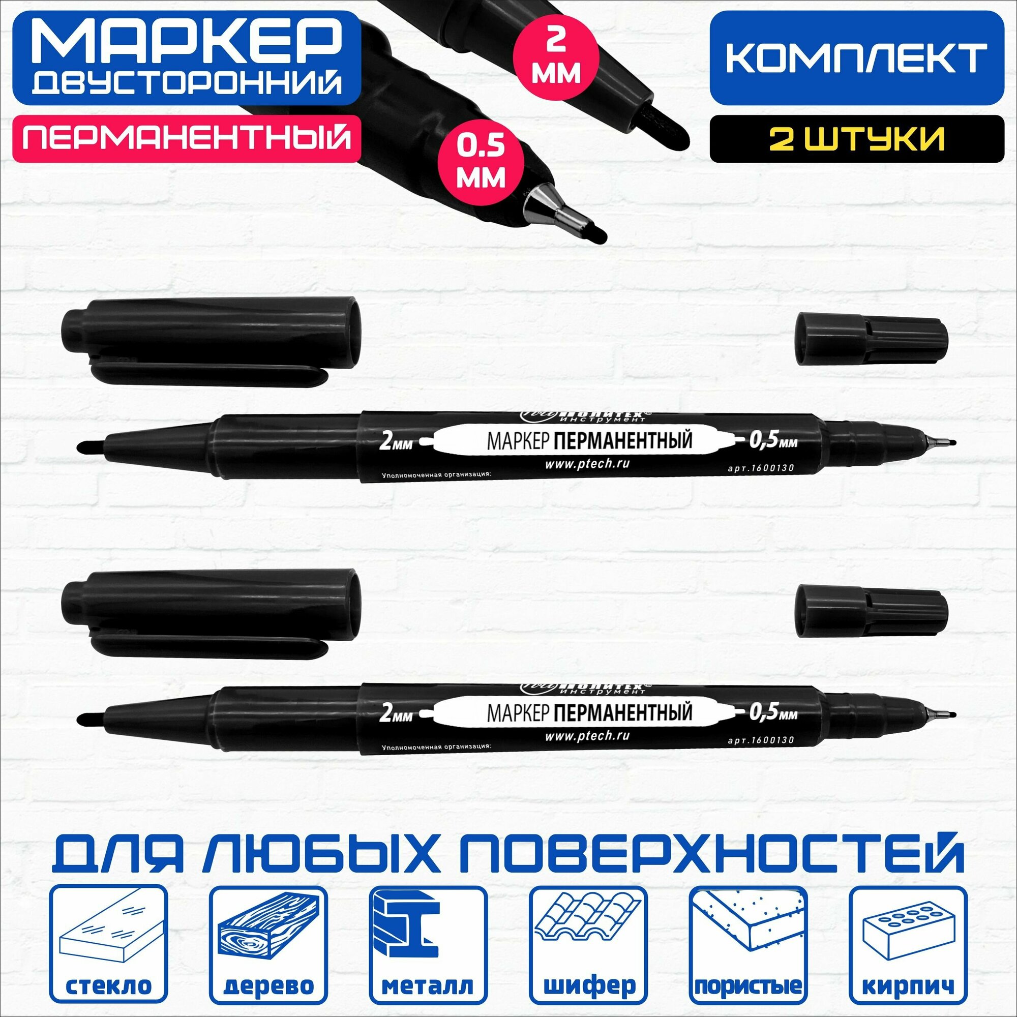 Купить Черные маркеры перманентные, двухсторонние, нестираемые для рисования и чертежа, строительные, 2 штуки