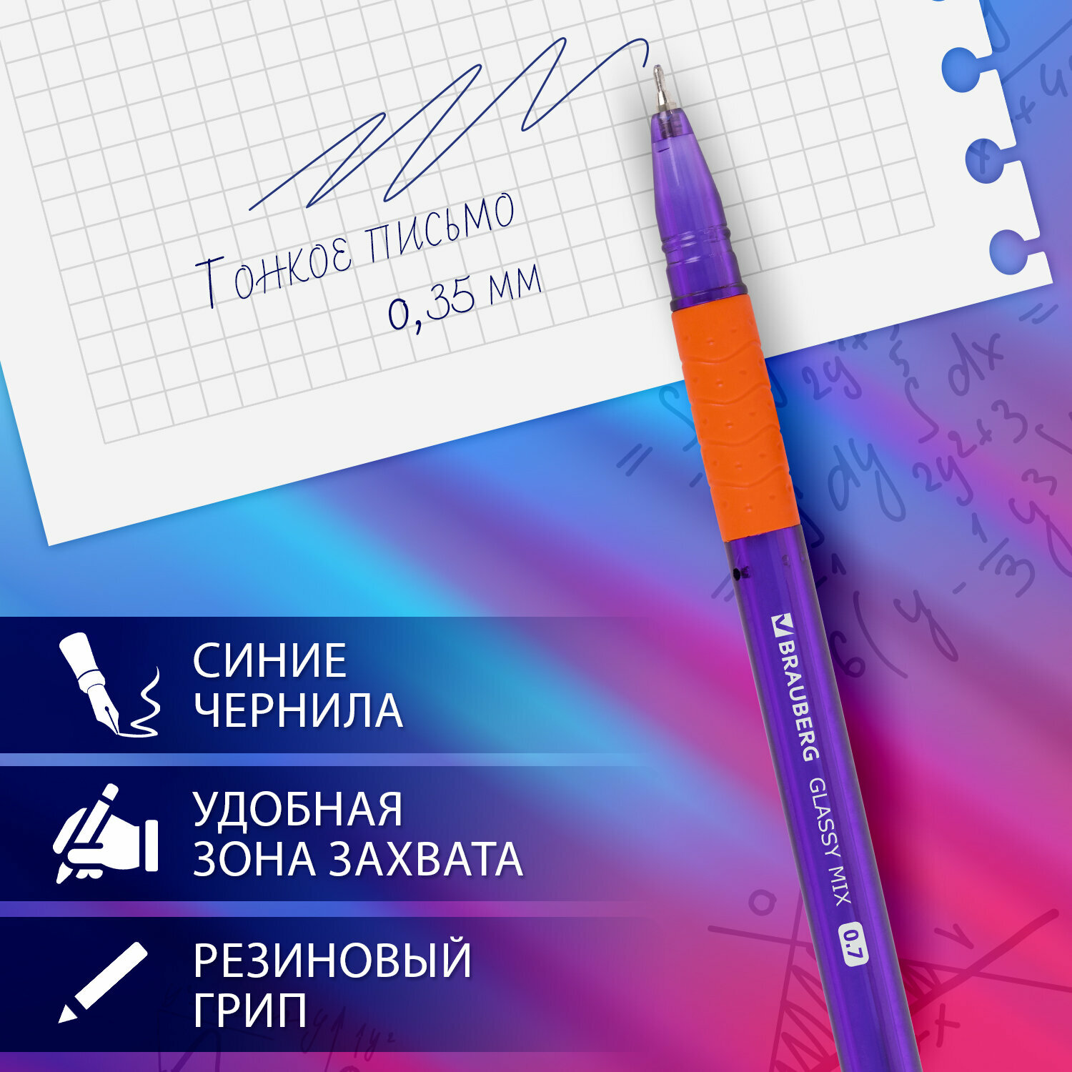 Ручки шариковые синие набор 12 штук тонкие для школы, линия письма 0,35 мм, Brauberg Glassy Mix, 881016 интересное: