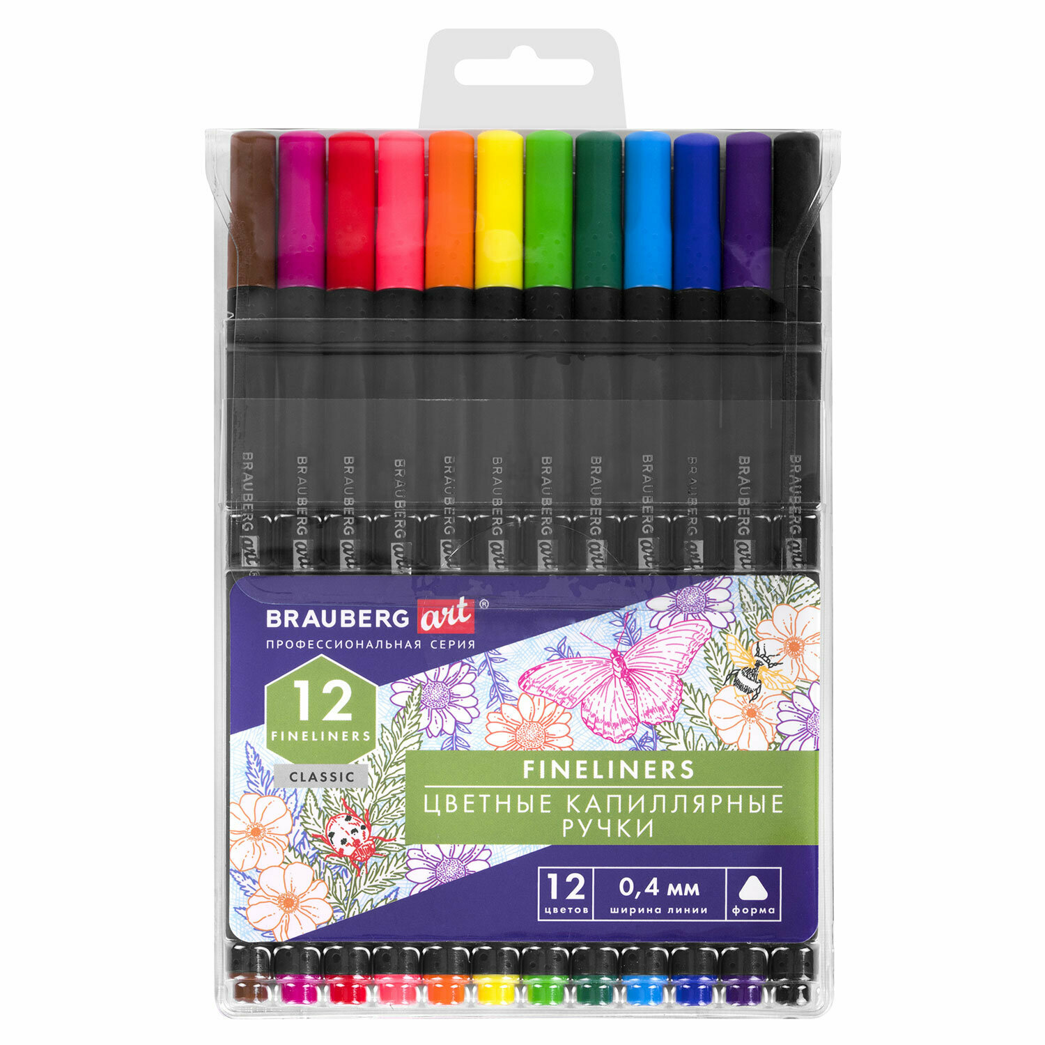 Набор капиллярных ручек Brauberg Art Classic (0.4мм, трехгранные, 12 цветов, металлический наконечник) (144147), 12 уп.