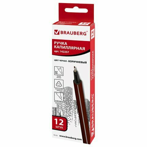 Ручка капиллярная Brauberg Aero (0.4мм, метал.наконечник, трехгранная) коричневая, 12шт. (142257)