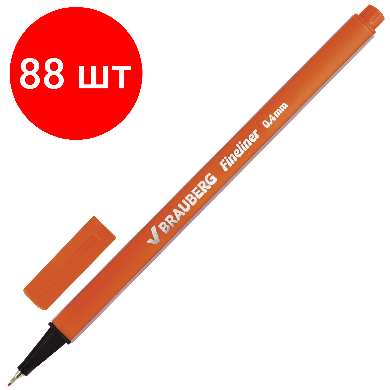 Купить Комплект 88 шт, Ручка капиллярная (линер) BRAUBERG "Aero", оранжевая, трехгранная, металлический наконечник, линия письма 0.4 мм, 142249