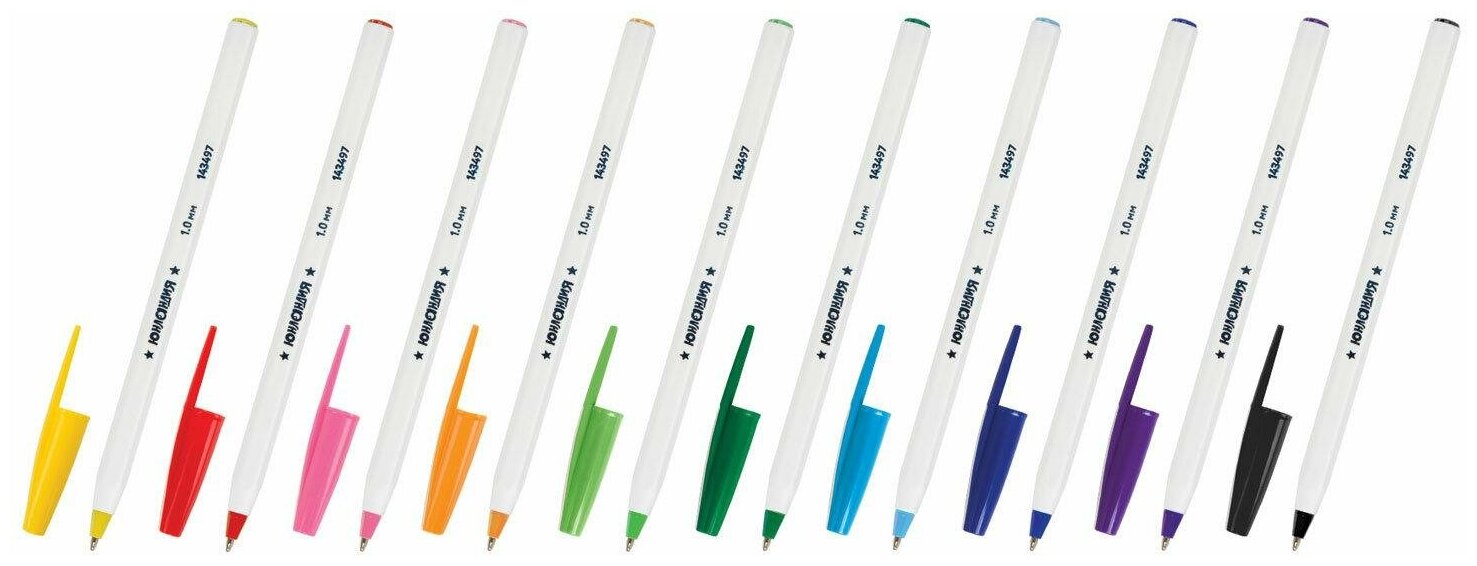 Купить Ручки шариковые юнландия "школьная", набор 10 цветов, длина письма 2000м, 1мм, линия 0,5мм, 143497