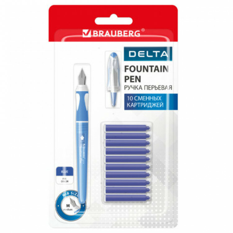 Купить Перьевая ручка с 10 сменными картриджами, школьный набор для каллиграфии Brauberg Delta, эргономичный корпус, иридий, 143954