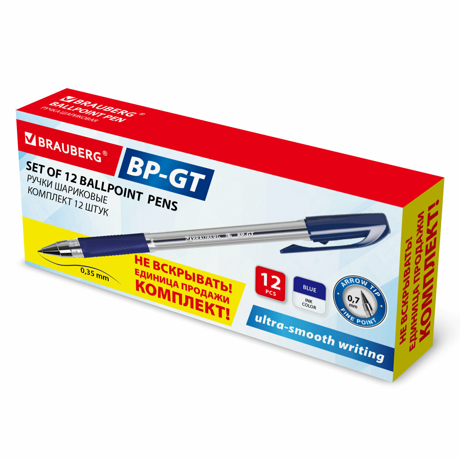 Купить Ручки шариковые синие набор 12 штук тонкие для школы с грипом, евронаконечник 0,7 мм, линия письма 0,35 мм, Brauberg BP-GT, 144005