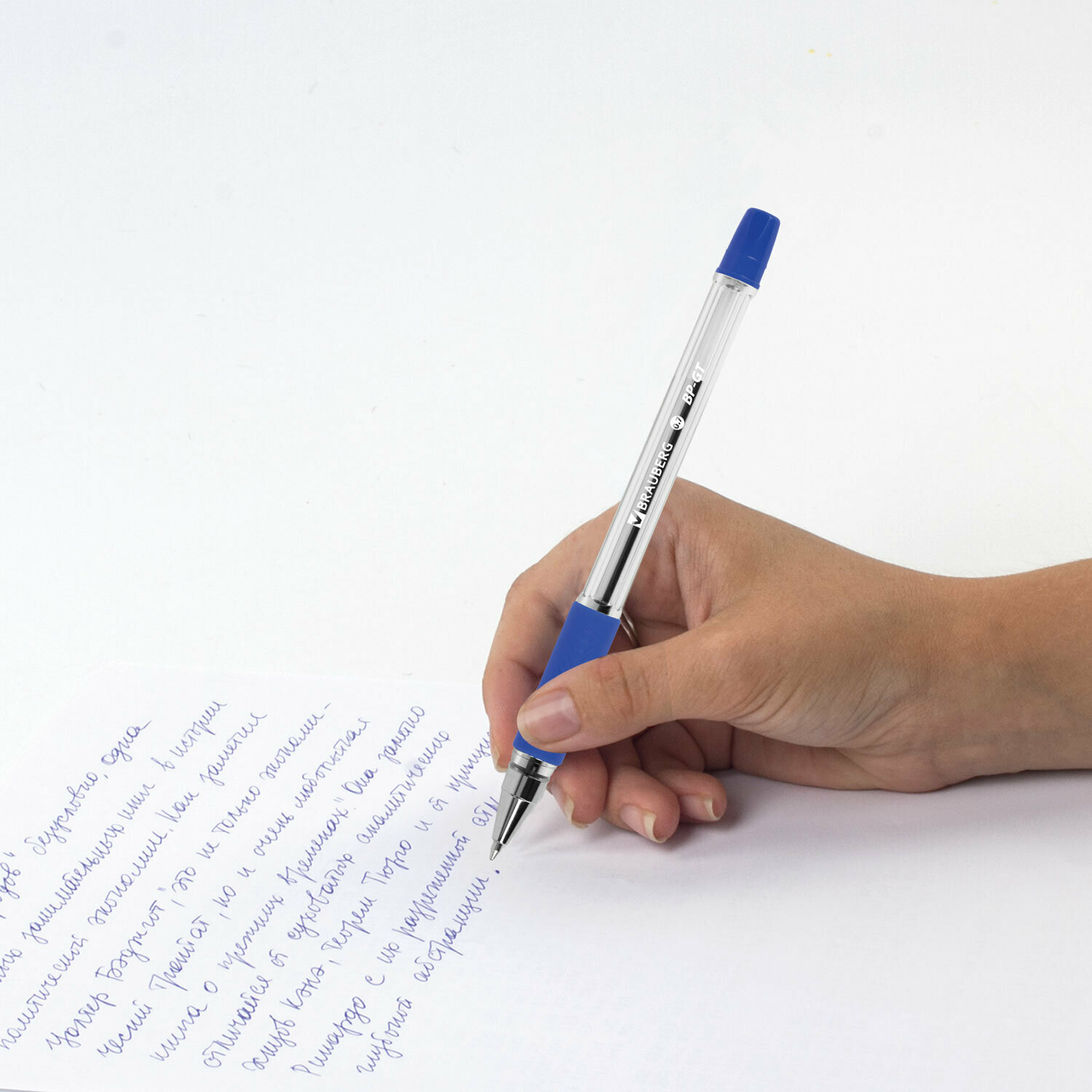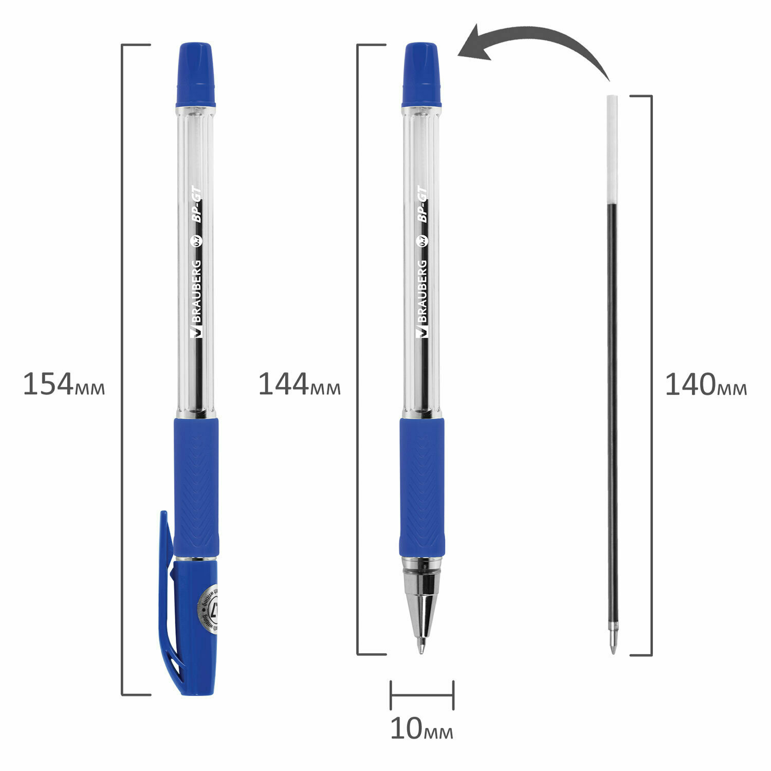 Ручки шариковые синие набор 12 штук тонкие для школы с грипом, евронаконечник 0,7 мм, линия письма 0,35 мм, Brauberg BP-GT, 144005 интересное: