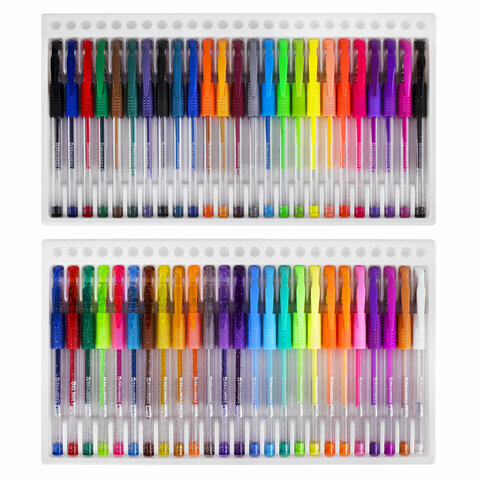 Комплект 2 шт, Ручки гелевые с грипом набор 50 цветов, линия письма 0.5 мм, BRAUBERG KIDS, 143822