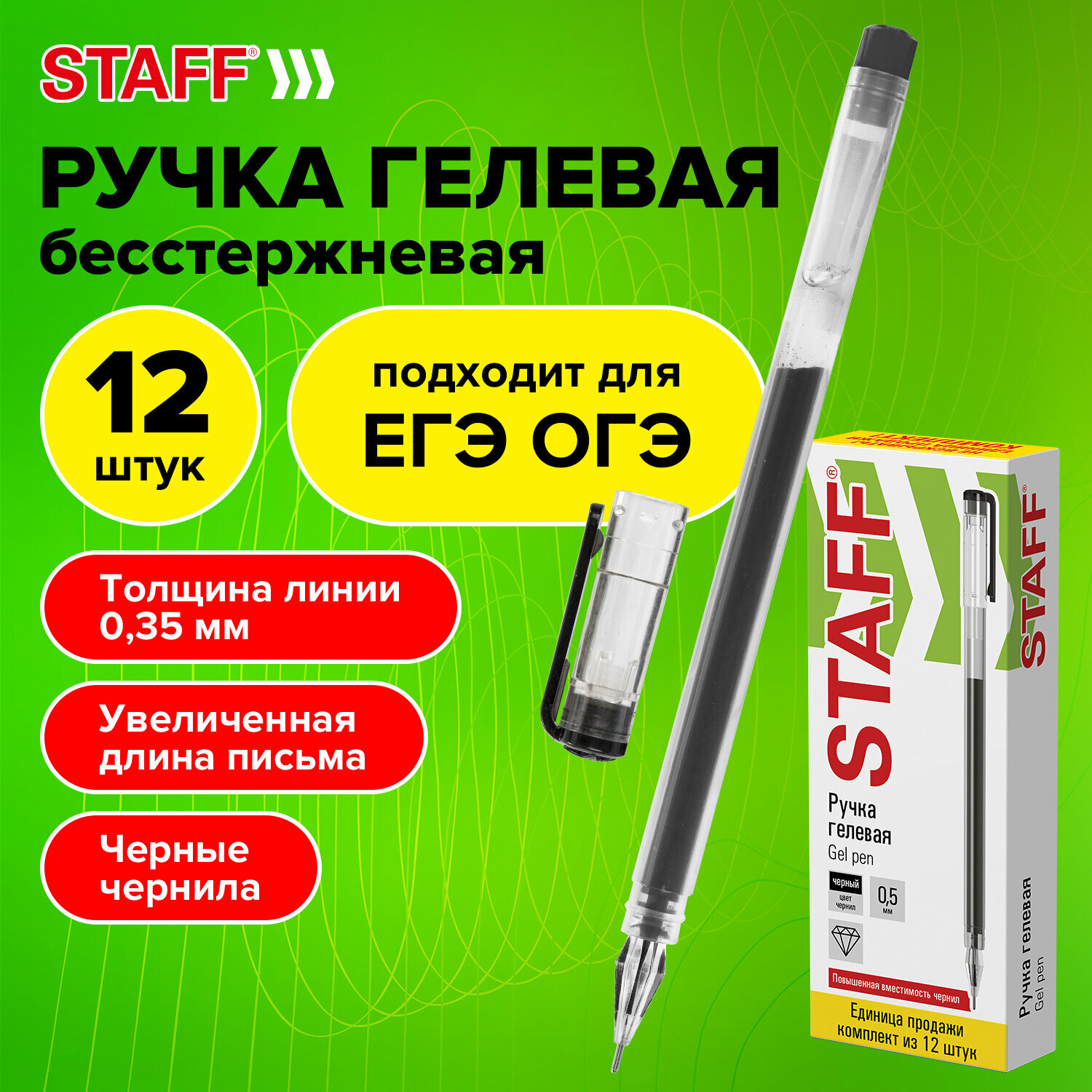 Ручка гелевая Staff Gp-675, Комплект 12 штук, Черная, увеличенная длина письма 1000 метров, 880420 интересное: