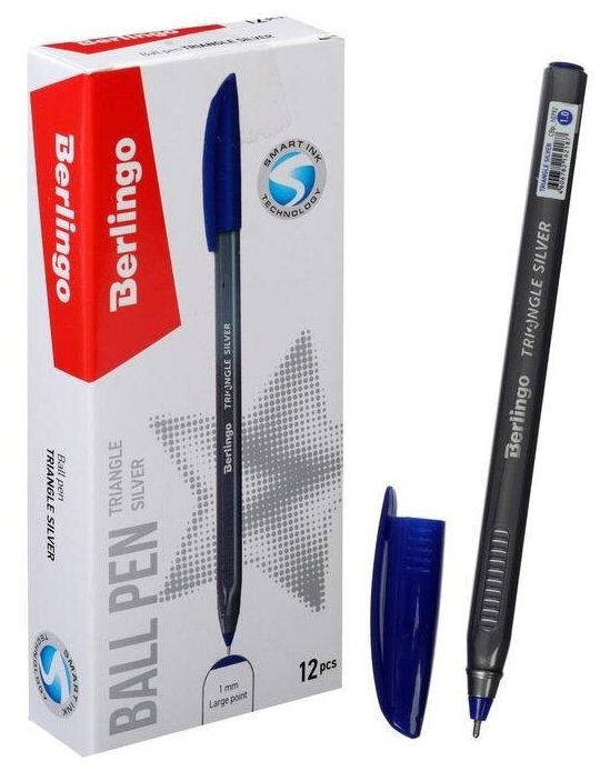 Ручка шариковая Berlingo "Triangle Silver" синяя, 1,0мм, трехгран., упаковка 12 шт.