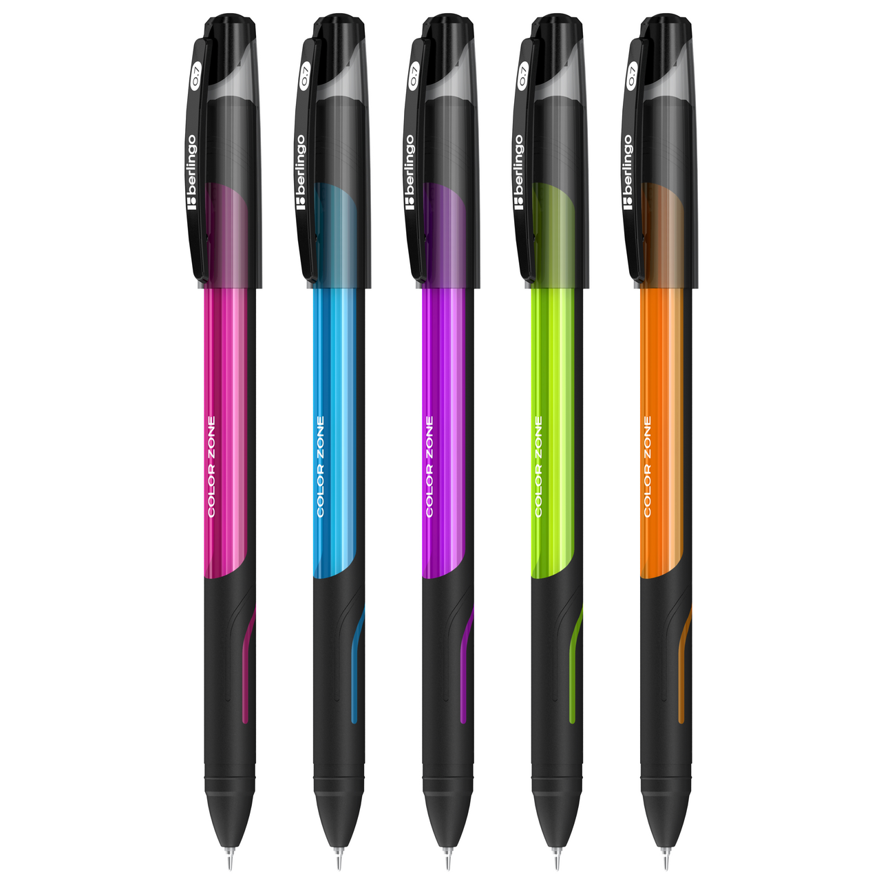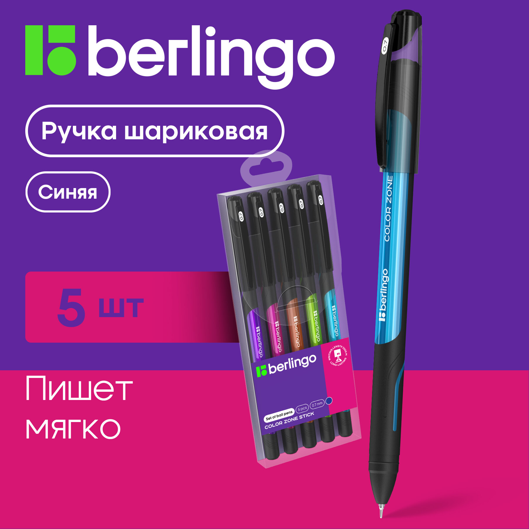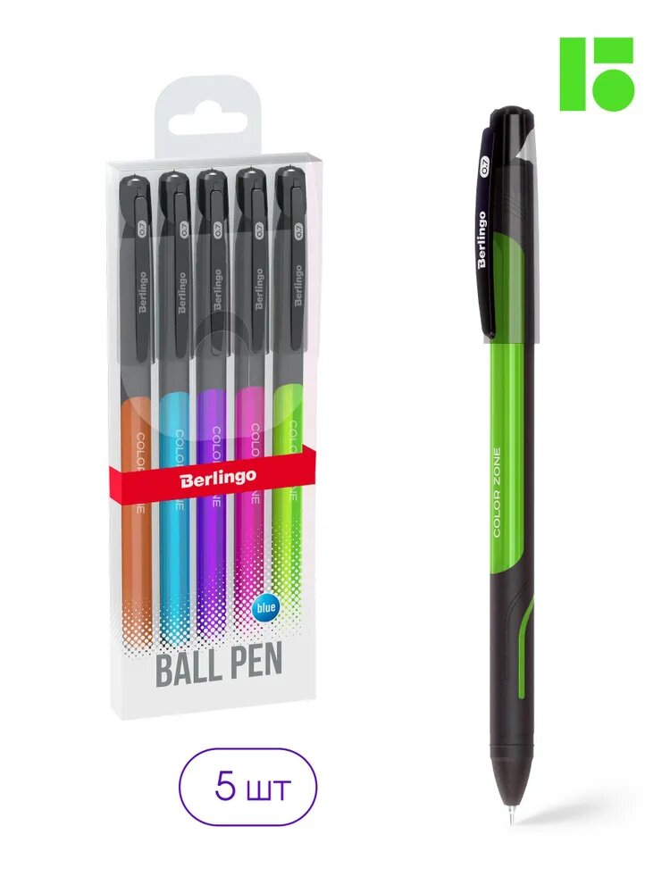 Купить Ручки шариковые синие набор для школы 5 штук/ комплект Berlingo "Color Zone stick" с прорезиненым круглым корпусом /линия письма 0,7 мм, smart ink (легкое, мягкое касание бумаги), канцелярия для офиса