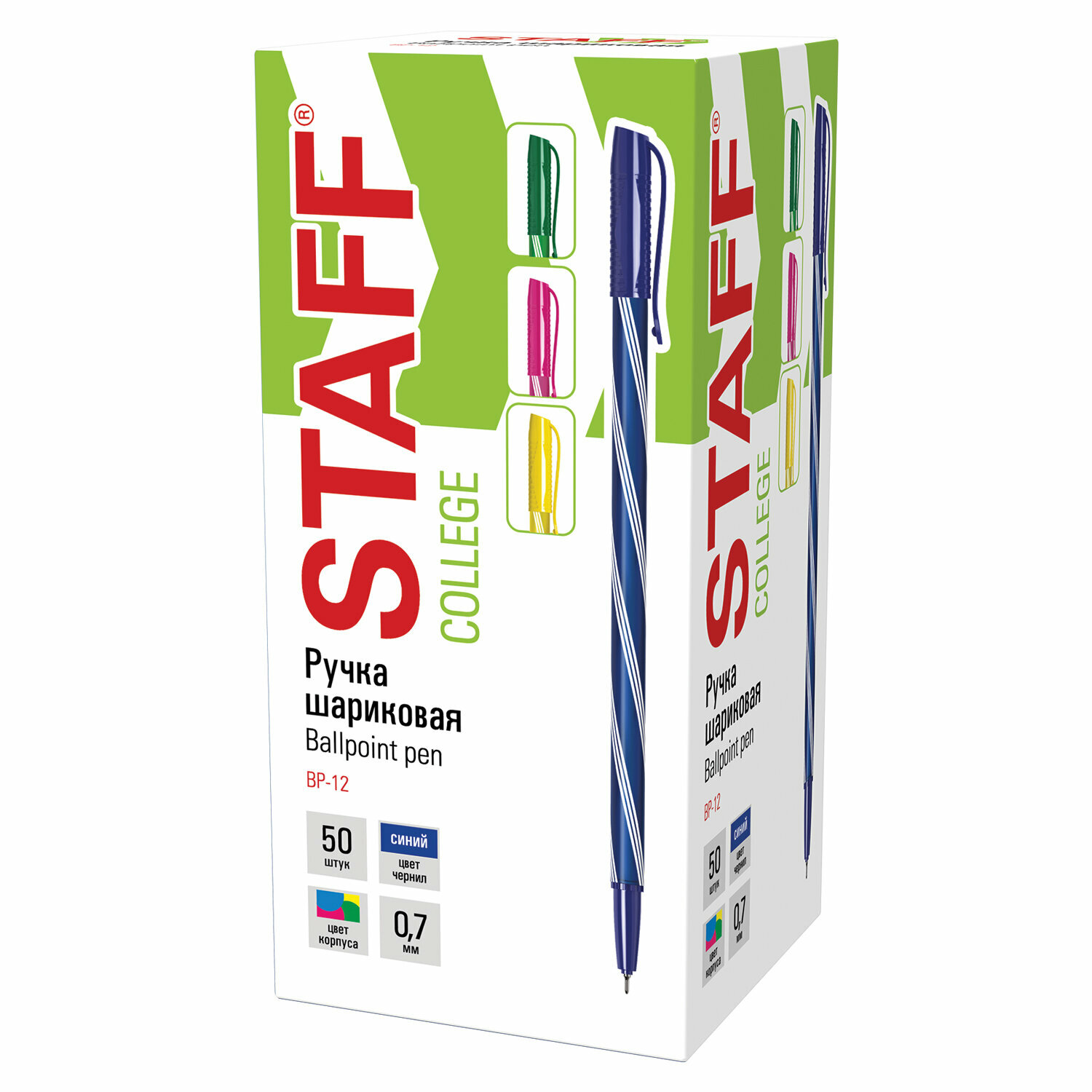 Купить Ручка шариковая Staff College Bp-12, синяя, Выгодный Комплект 50 штук, линия 0,35 мм, 880998