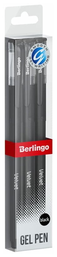 Ручка гелевая Berlingo "Velvet" черная, толщина пишущего узла 0,5 мм, линия письма 0,4 мм, прорезиненный корпус, 3 шт.