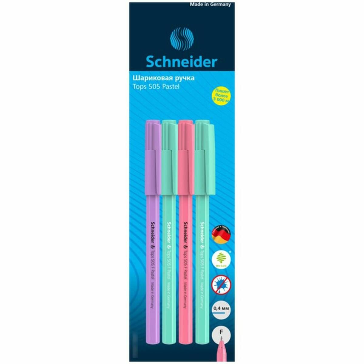 Набор шариковых ручек Schneider Tops 505 F Pastel 4шт., синие, 0,8мм, корпус ассорти, блистер